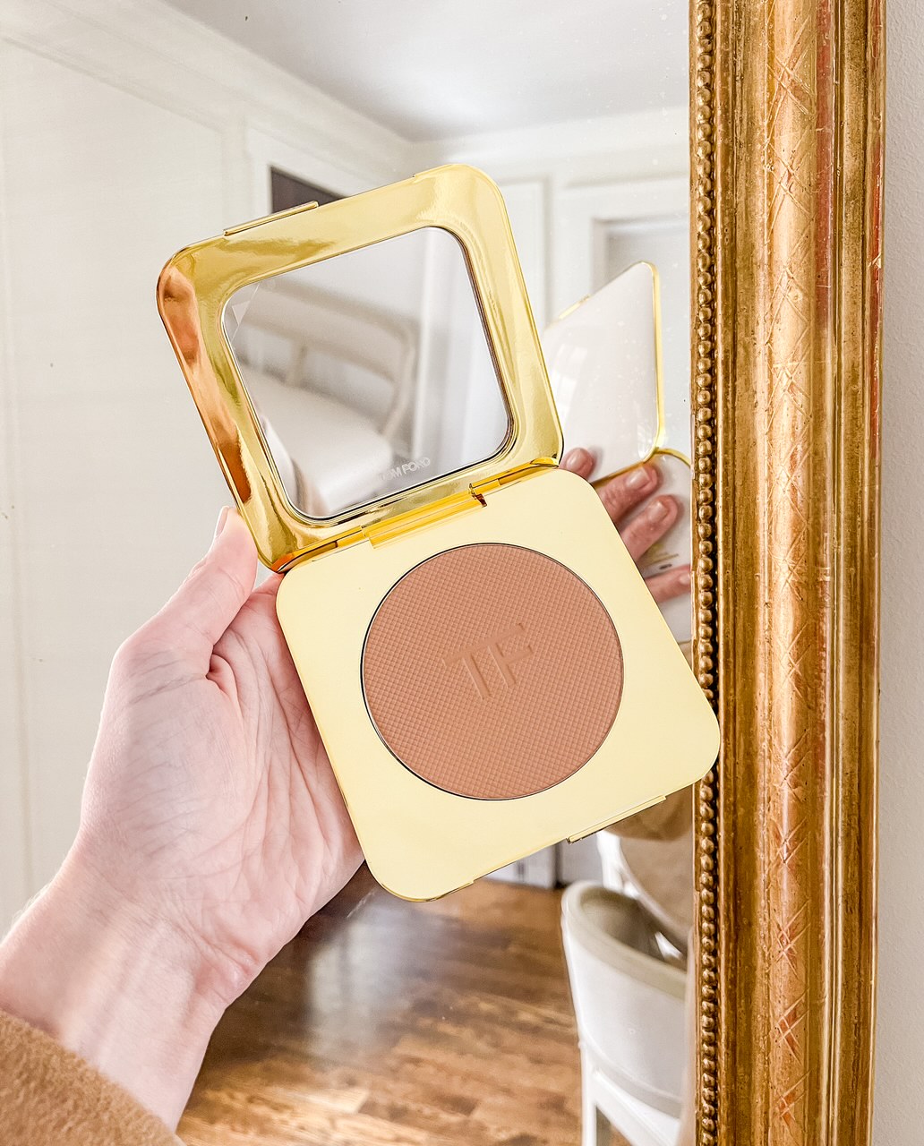 This bronzer is perfect if you like a subtle, natural glow. I use the shade Tera 02 and apply it to my cheekbones, jaw, and temples using this Bobbi Brown brush.