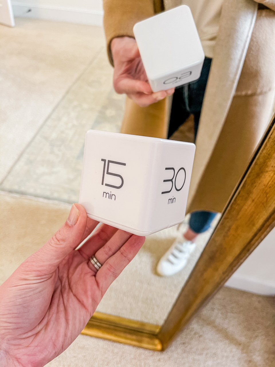 If you’re like me and can easily get distracted, spending way too much time on one task, this cube will change the way you work—you place the desired time you want to spend on a task/project face up to start the timer.