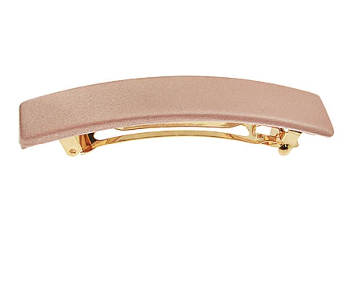 I love adding a barrette to a low ponytail or half-up style. I usually go for a gold clip, like my $12 open-frame one, or choose a color that coordinates with my outfit, like this pink rectangle one. I love the seashell detail of this one for summer.