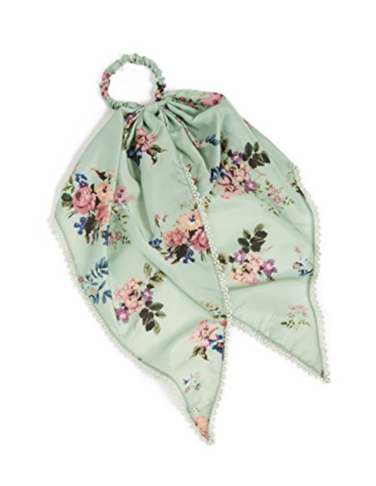 Hair scarves are probably the most timeless of the bunch. They’re so easy to wrap around a ponytail, and many are made with built-in ties so that they stay put all day. I love the lace trim detail on this one.