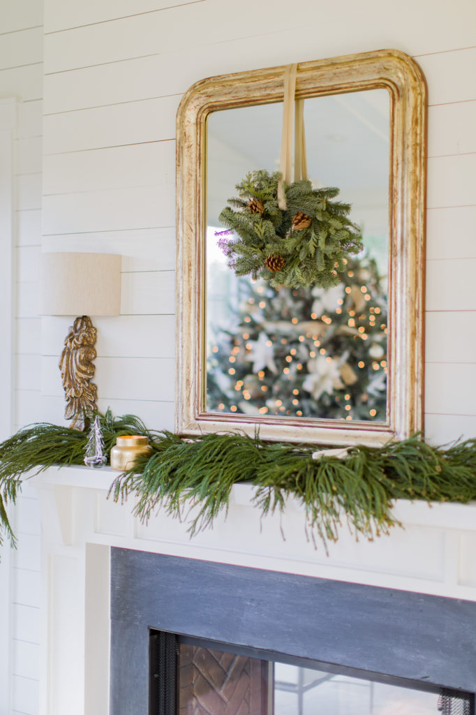 My scented pinecones, wreaths, swag, and berry branches are all from Dealer Joe’s.