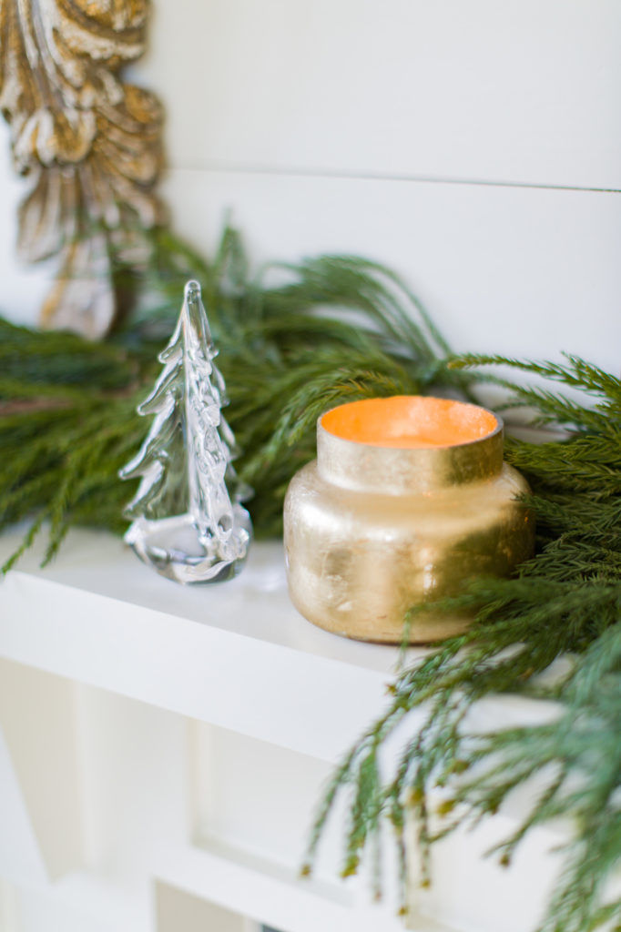 I attempt to carry the theme of the tree all through the home to make it really feel even cozier. We have now touches of gold-year spherical, however I’ll add a vacation candle (my candle and cloche is on sale) and a fake fur blanket for Christmas motion pictures on the couch. I simply ordered this classic Night time Earlier than Christmas e-book—it’s enjoyable figuring out we are able to use it when we have now children sooner or later, too.
