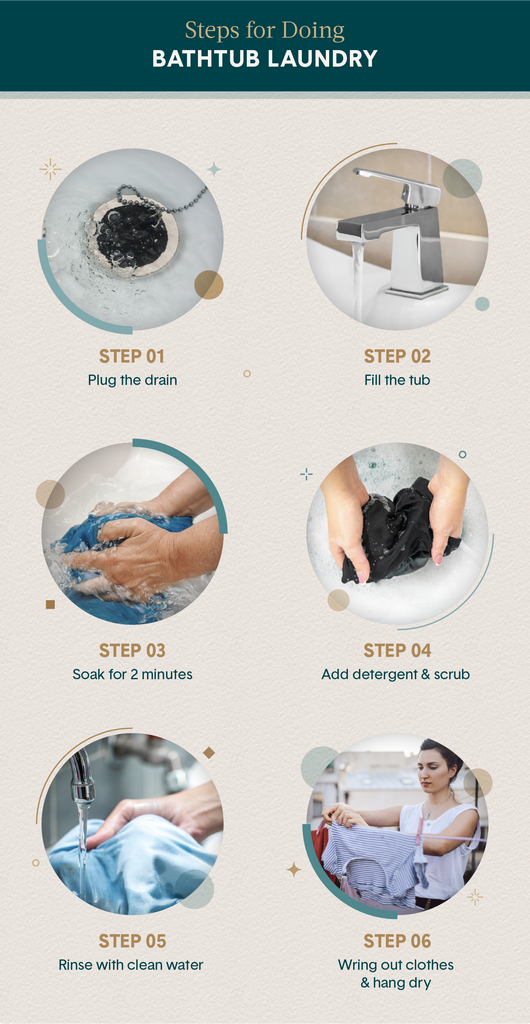First, refill your bathtub with water and add your clothes to soak. As soon as your garments have soaked for a few minutes, add your detergent and scrub it into your clothes, specializing in stained or drawback spots.