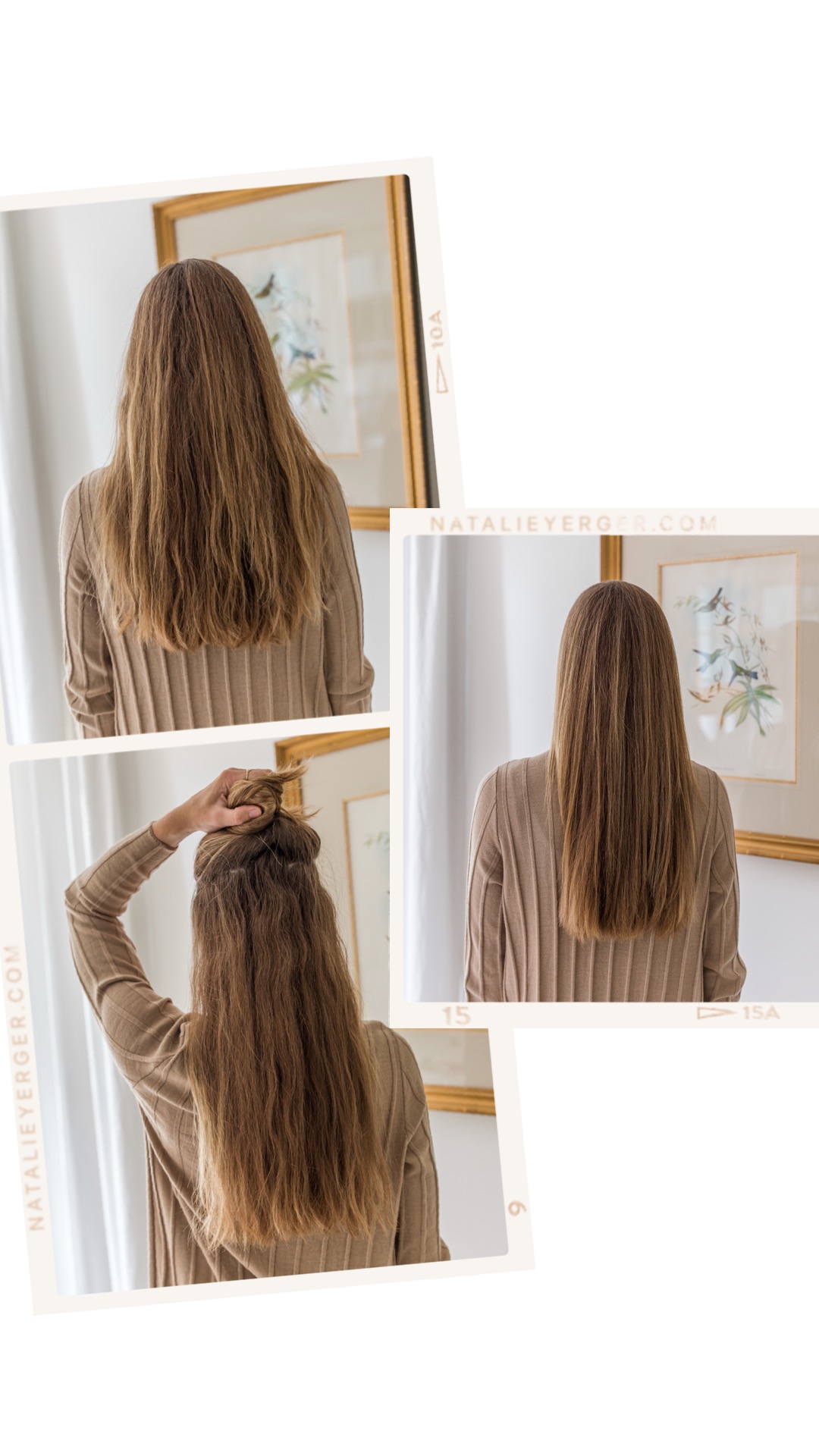 I showered the morning of these photos and let my hair air dry completely. Below, you see my hair go from air dried to straightened with the Corrale.