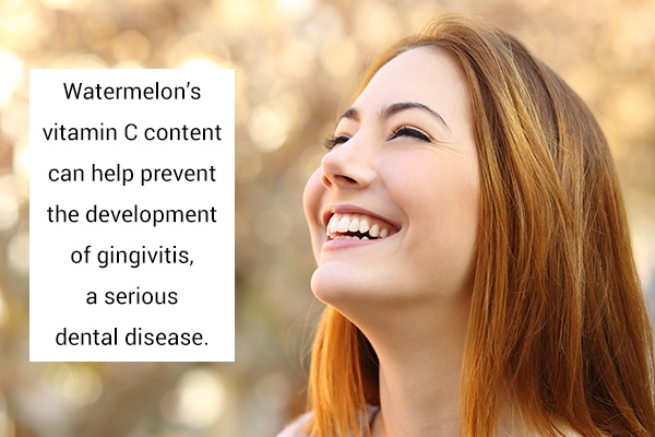 Watermelon’s vitamin C content material can assist stop the event of gingivitis, (8) a critical dental illness.