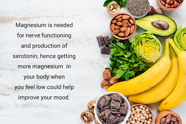 If you suddenly feel sad without any known cause, it can be due to a magnesium deficiency. Magnesium is needed for nerve functioning and production of serotonin, hence getting more magnesium in your body when you feel low could help improve your mood. (36)