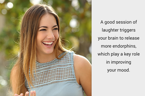 Laughter not only reduces the levels of hormones like cortisol and epinephrine but also increases the levels of health-enhancing hormones. (25) A good session of laughter triggers your brain to release more endorphins, which play a key role in improving your mood. In fact, laughter can also help people suffering from either SAD or full-blown depression.