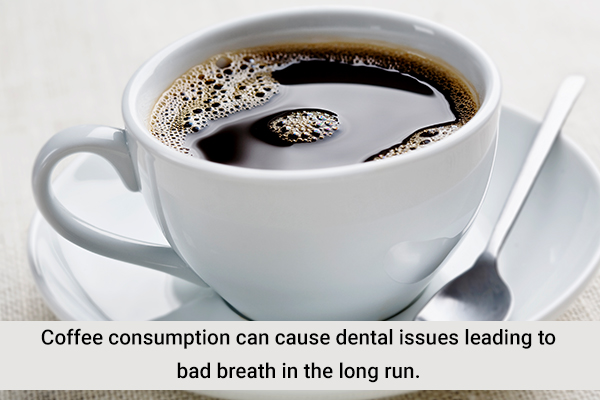 Coffee consumption can cause dental issues, which can lead to bad breath in the long run. It also dries your mouth out, which can be a contributor to smelly breath. (16)(17)