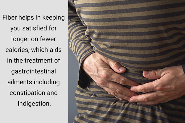 Fiber helps in keeping you satisfied for longer on fewer calories, which aids in the treatment of gastrointestinal ailments including constipation and indigestion. (10)