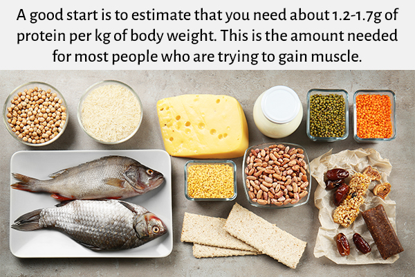 A great begin is to estimate that you just want about 1.2–1.7 g of protein per kg of physique weight (1) (divide your weight in kilos by 2.2 to find out kg). That is the quantity wanted for many people who find themselves making an attempt to achieve muscle.