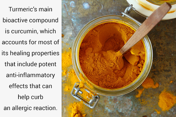 Its principal bioactive compound is curcumin, which accounts for many of its therapeutic properties that embrace potent anti-inflammatory results that may assist curb an allergic response. (2)