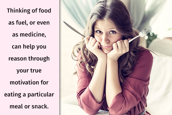 Thinking of food as fuel, or even as medicine, can help you reason through your true motivation for eating a particular meal or snack.