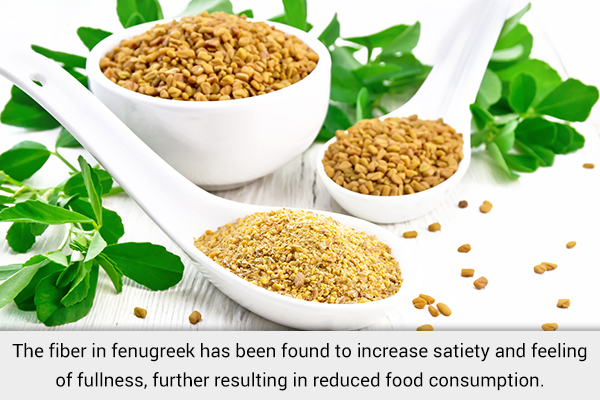 In a examine that evaluated the impact of fenugreek on people with weight problems, it was famous that the fiber in fenugreek (8 g) elevated satiety and feeling of fullness and additional resulted in decreased meals consumption. This discovering indicated that overeating in people with weight problems could be managed with the consumption of fenugreek seeds. (1)