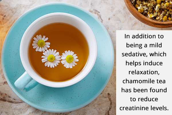 Along with being a gentle sedative, which helps induce rest, chamomile tea has been discovered to cut back creatinine ranges. (1)