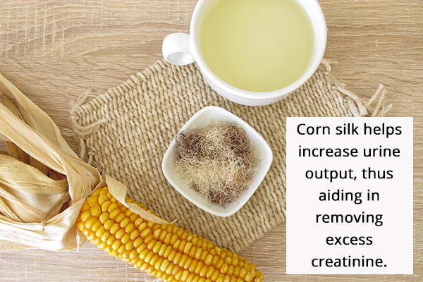 Corn silk acts as a pure diuretic and anti inflammatory agent. It helps enhance urine output, thus aiding in eradicating extra creatinine. It additionally reduces edema and lowers hypertension. (11)