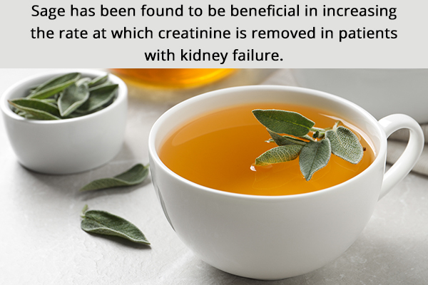 Salvia officinalis, generally often called sage, has been discovered to be helpful in growing the speed at which creatinine is eliminated in sufferers with kidney failure. It helps filter out and remove creatinine from the physique. It additionally helps enhance renal circulation. Other than that sage has numerous well being advantages, vitamins and culinary makes use of.