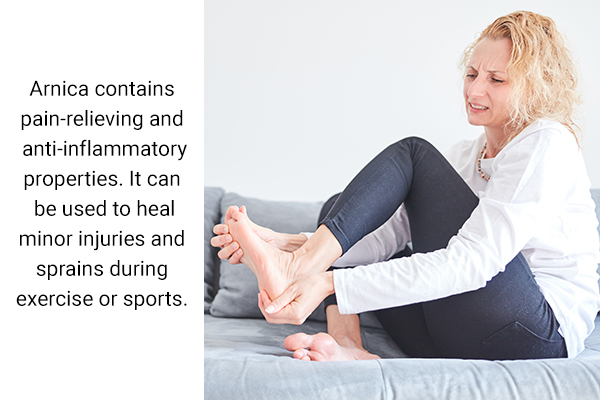 Arnica accommodates pain-relieving and anti inflammatory properties. (1) It may be used to heal minor accidents and sprains throughout train or sports activities.