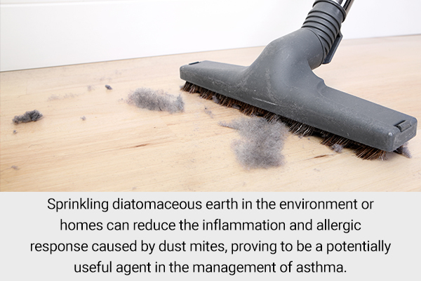 Sprinkling diatomaceous earth within the setting or houses can cut back the irritation and allergic response attributable to mud mites, proving to be a probably helpful agent within the administration of bronchial asthma. (5)